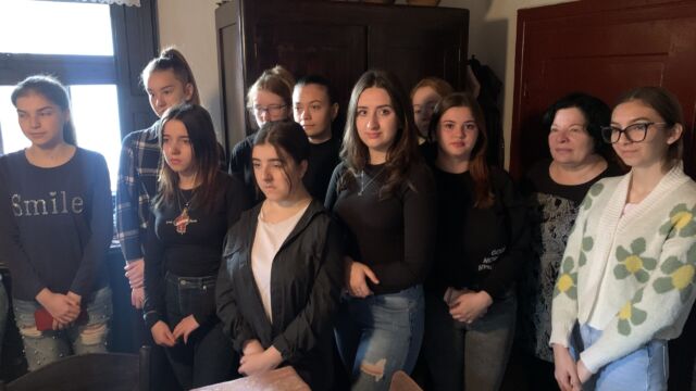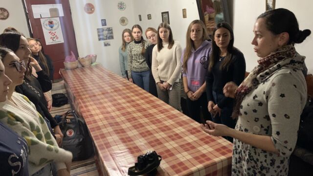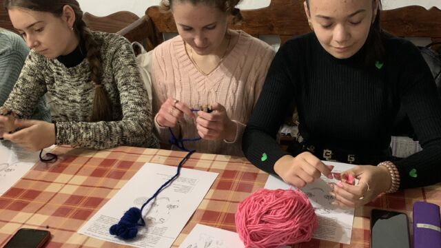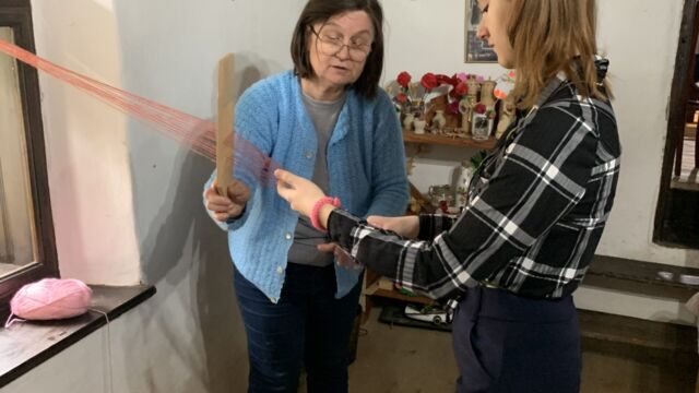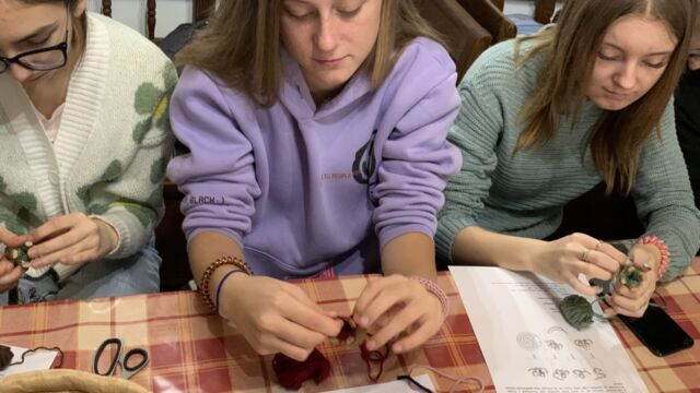 Séta után a csapat belevetette magát a munkába. Egy része a konyhában segédkezett, míg a többiek a foglalkoztató teremben próbálták elsajátítani a körmönfonást és a fonalmegmunkálás egyéb módjait.