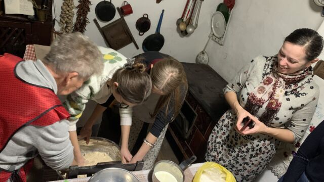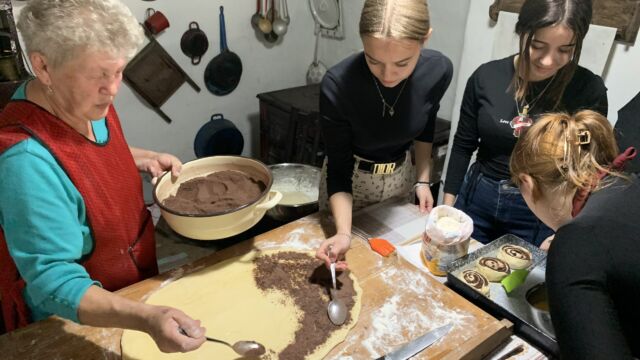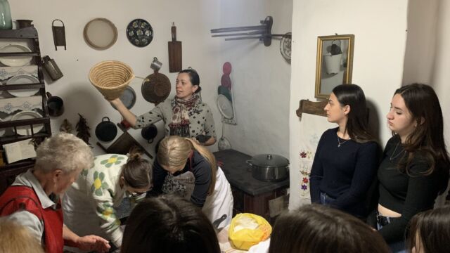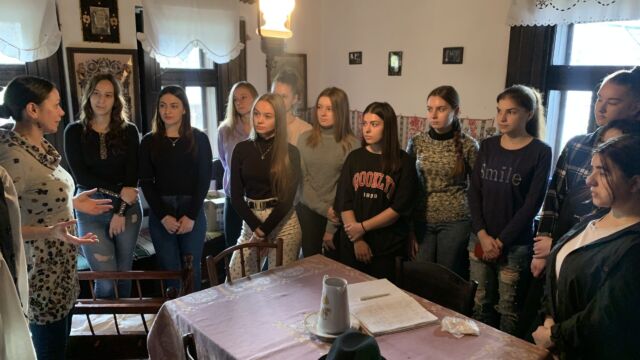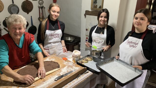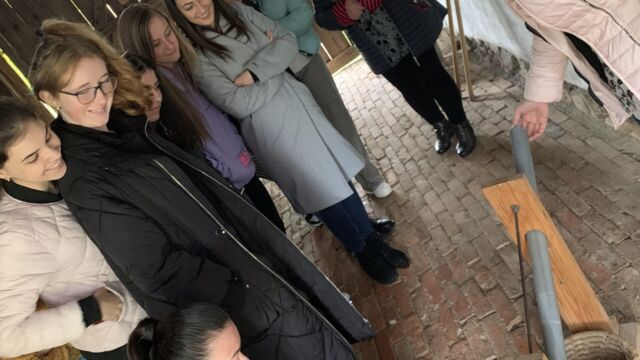 Az egész nap az alkotás jegyében telt el. Közvetlenül érkezésük után a diákok betekinthettek a konyhai tevékenységekbe, ahol tészta dagasztásánál segédkeztek, amelyből később kakaós csigák készültek. Az idő alatt, amíg a tészta megkelt, Gál Adél tárlatvezetést tartott, ahol megismertette a diákokkal a régi hagyományokat, az akkori kor népviseletét, a korabeli stílusú ház berendezését, az érdeklődő szemek használat közben figyelhették meg a kemencét és a hozzá tartozó eszközöket. A tárlatvezetés végén a botanikus kertben tettek egy sétát, megfigyelve a különböző növényeket.
