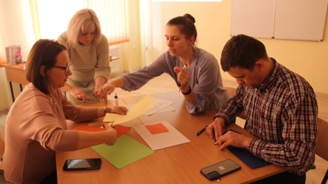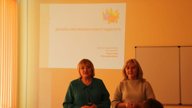 A Volinyi Pedagógustovábbképző Intézet Pedagógia és Pszichológia Tanszékének docense, a pedagógiai tudományok doktora, Nelya Kinakh dolgozta ki és vezette a tréninget. Megismertette a résztvevőket a design-gondolkodás alapvető fogalmaival, eszköztárával, hogyan lehet azt alkalmazni a szakoktatói vagy az általános pedagógiai tevékenység során. Példákon mutatta be, hogyan változtatja, alakítja színesebbé a design-gondolkodás az oktatási rendszert, gyakorlatban szemléltetett több innovatív technológiát. Az általa alkalmazott eszköztár segítségével hatékony tanulási környezetet lehet kialakítani, segít felkelteni a tanulókban az érdeklődést új dolgok megismerése iránt, ösztönöz az alkotói tevékenységre, támogatja a találékonyságot.