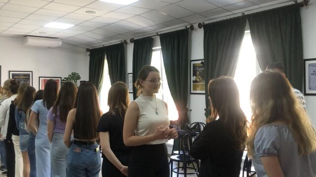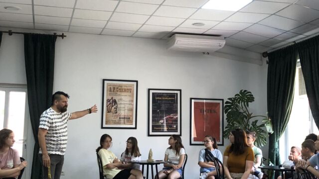A 400 éves épületben elsőként Sin Edina, a Kárpátaljai Megyei Magyar Drámai Színház megbízott igazgatója köszöntött bennünket. Rengeteg érdekességgel készültek számunkra, amelyeket Rajkó Balázs mutatott be.