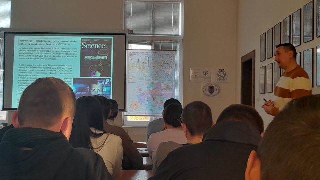A Géniusz Alapítvány által szervezett Kárpátaljai Vándoregyetem 2024. október 22-én tartott előadásaira meghívást kaptak intézményünk diákjai és tanárai is. Makó Pál fizika tanár kíséretében az Alkalmazott matematika szak 3-ik és 4-ik évfolyamának több diákja a Biológia, Gazdaságtudomány és Mesterséges intelligencia szekció előadásait hallgatták meg. A program részeként a bemutatásra került többek között dr. Sztojka Miroszlávnak, a II. RF KMF Matematika és Informatika Tanszéke docensének A jövő technológiája: Mesterséges intelligencia mindennapjainkban című prezentációja.