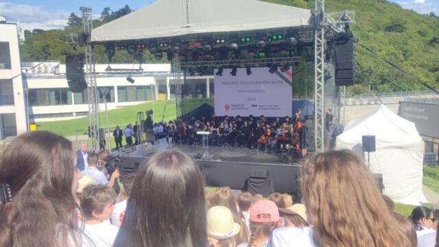 Másnap reggel diákjaink és tanáraik közösen sétáltak át a Nemzeti Összetartozás Hídján a Magyar Kálváriához, ahol megemlékezést tartottak a 100. országzászlónál. A megemlékezést követően ezer középiskolás diák közösen szavalta el nemzeti imánkat, a Himnuszt. A nap fénypontjaként a résztvevők élőláncot alkotva kötötték össze a Magyar Kálváriát a Rákóczi Táborral – egy szimbolikus esemény, amely az összetartozás erejét és fontosságát jelképezte. Az estét a Blahalouisiana zenekar koncertje, tűzijáték és zenés szórakozás tette emlékezetessé.