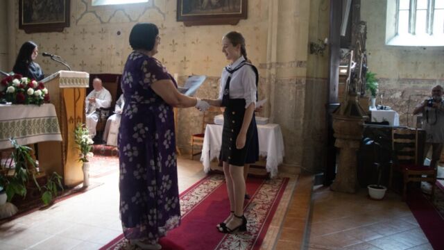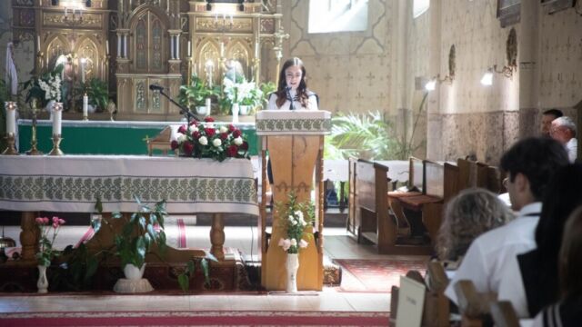„Ma a tizennegyedik oklevélátadó ünnepségünket tartjuk meg, és immár hatodik alkalommal az Úr házában, mégis minden évben úgy érzem, mintha először történne. Kedves végzősök, ne feledjétek, bármerre is jártok, mindig visszanézhettek ide, ahol minden elkezdődött. Az iskola nem csupán évszámokat, adatokat vagy definíciókat ad át, hanem megtanít gondolkodni, kérdezni, összefüggésekben látni. Kívánom, hogy mindezt vigyétek magatokkal”
