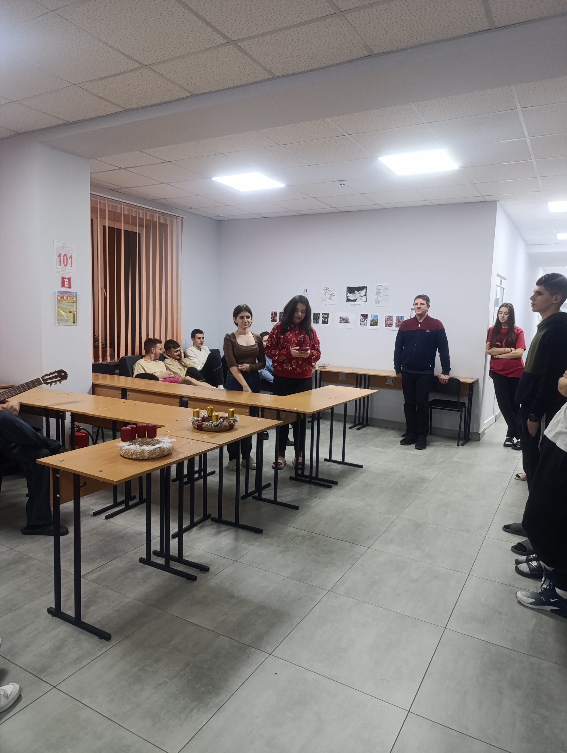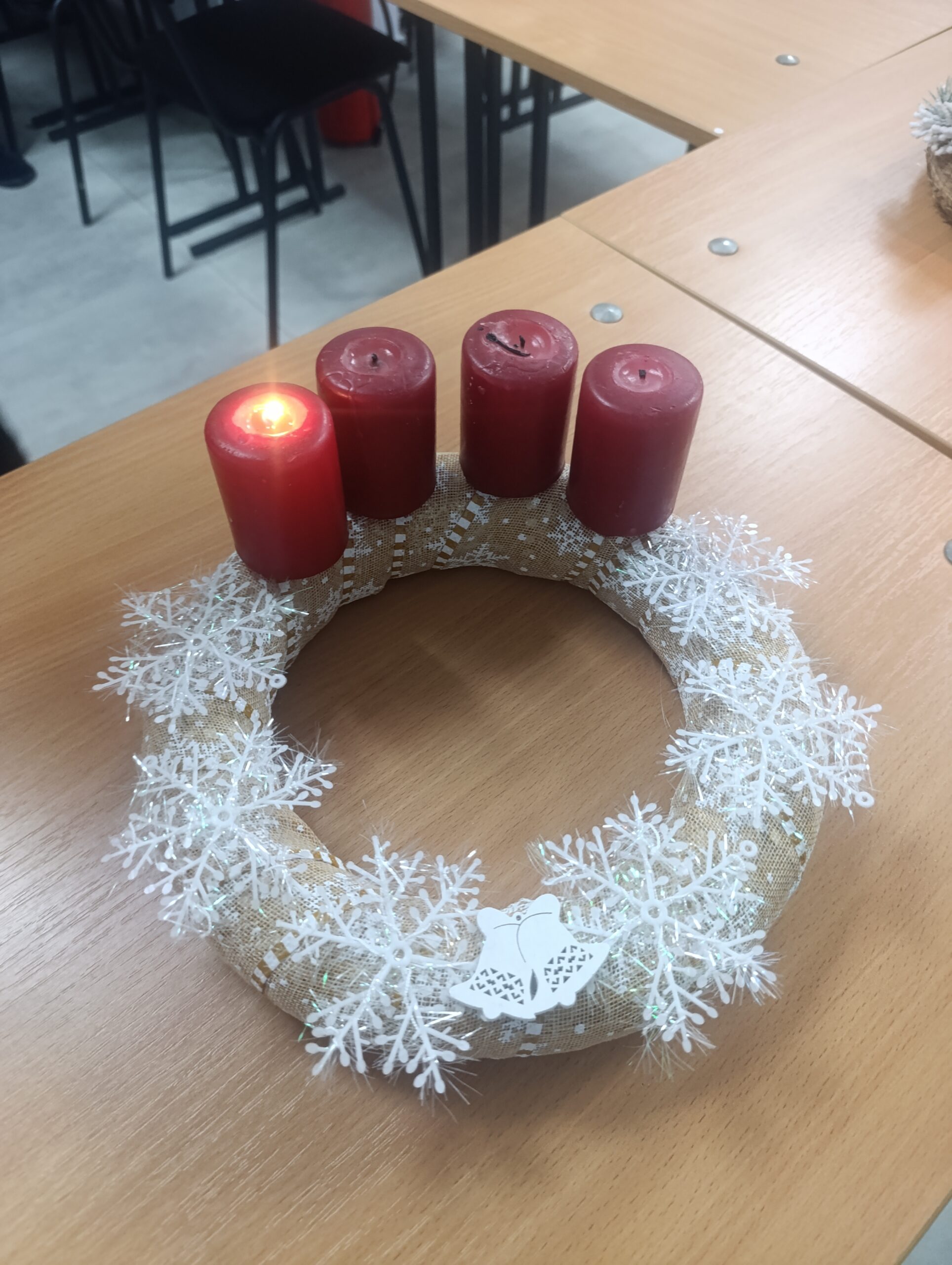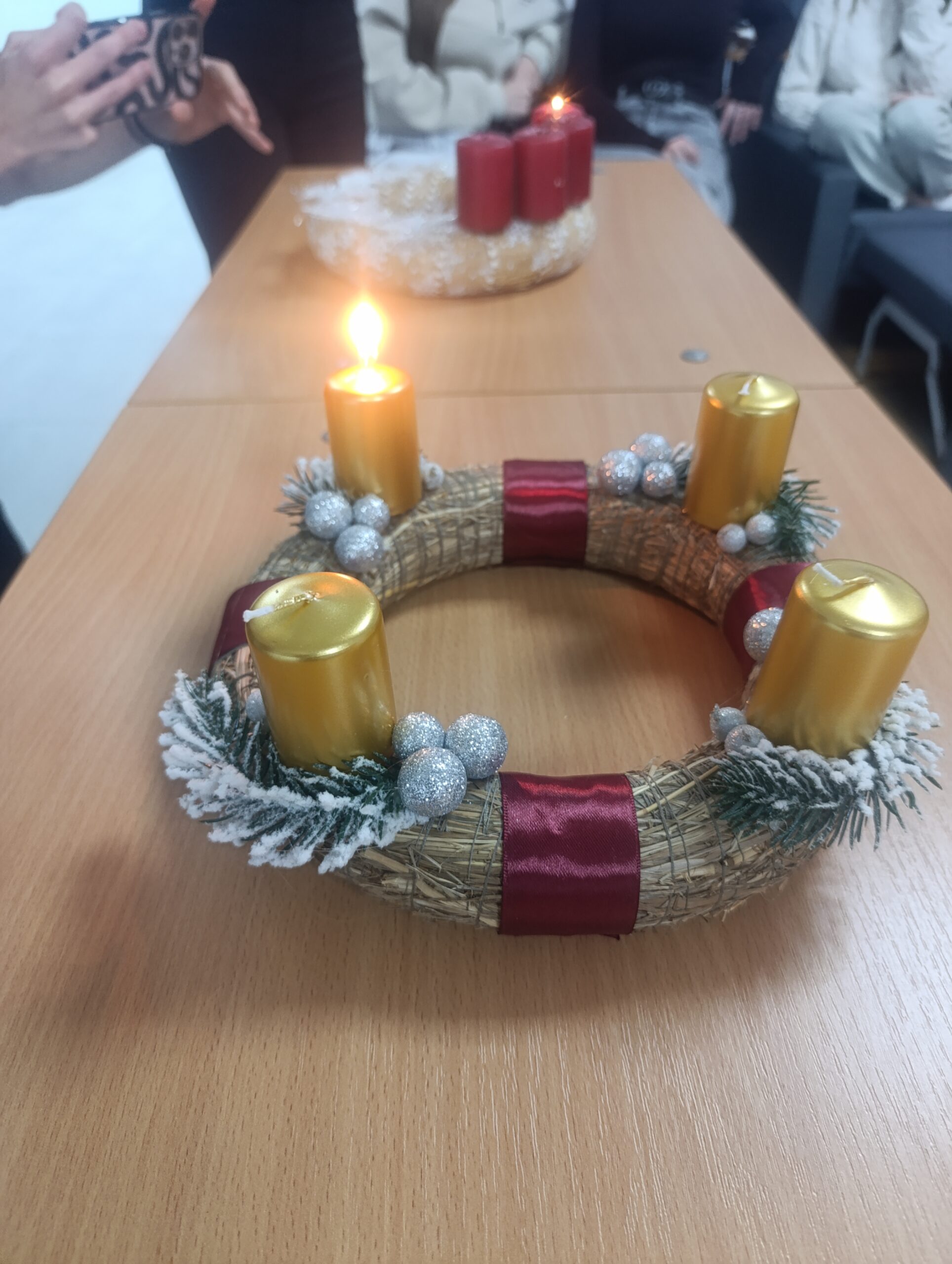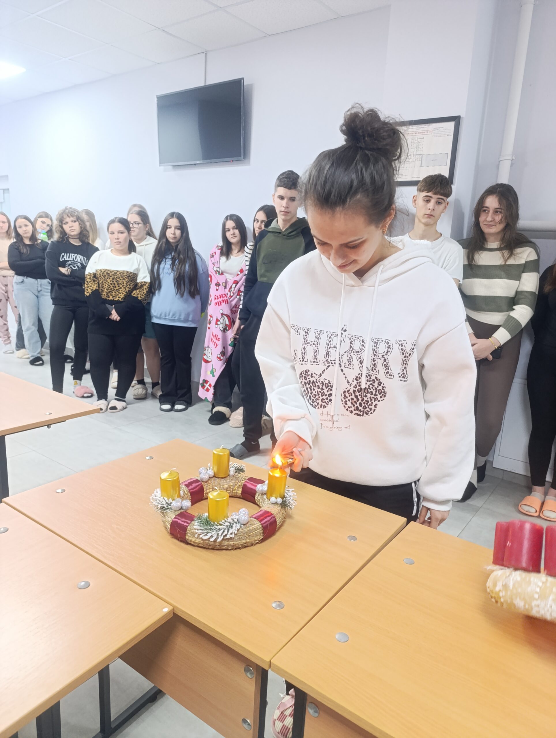 December 1-jén ünnepi hangulat lengte be a kollégium közösségi terét, ahol a diákok közösen gyújtották meg az idei adventi koszorú első, a hit lángját jelképező gyertyát.