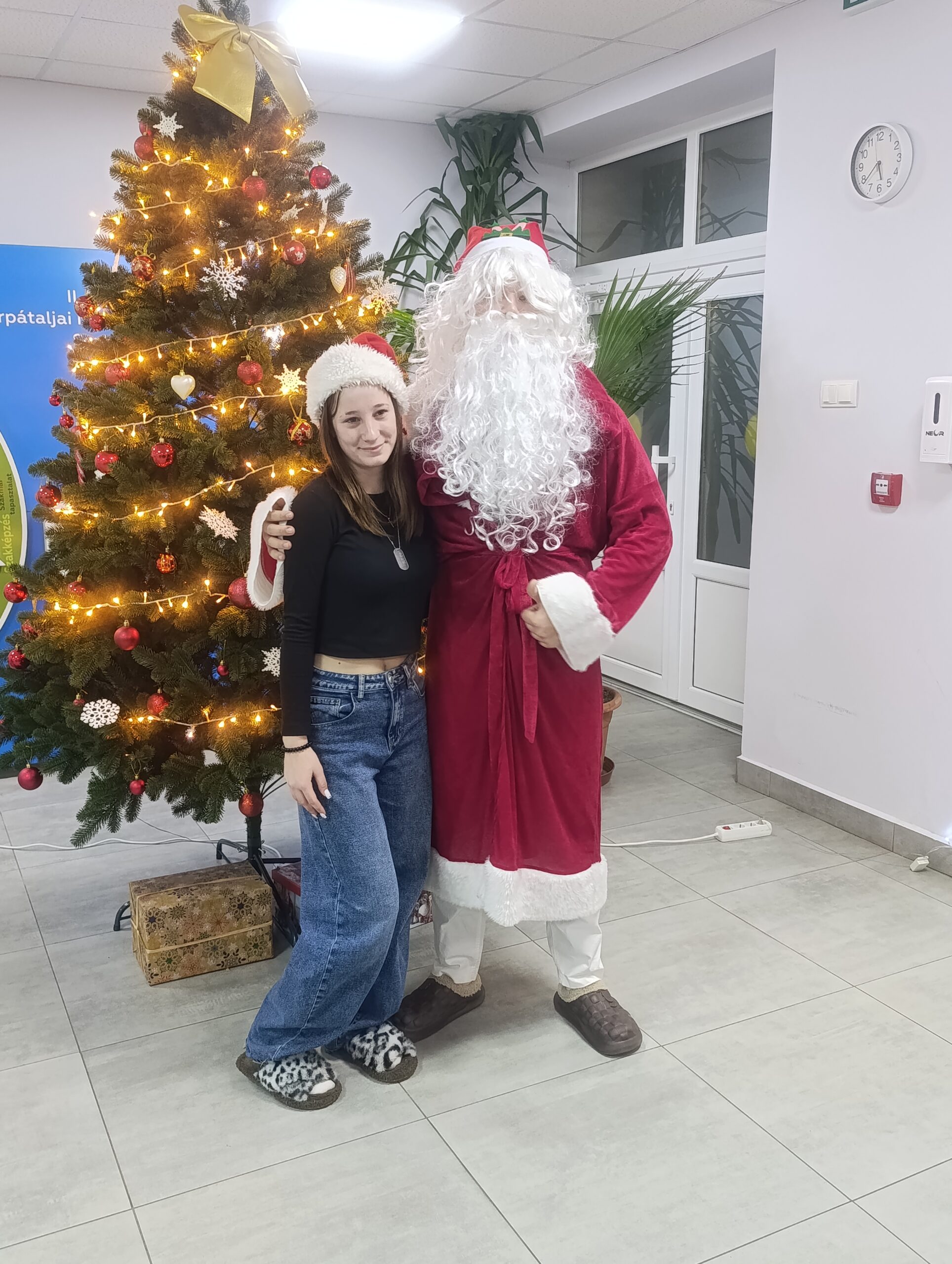A mézeskalácsozás után a kollégisták különleges vendéget is köszönthettek: megérkezett a Mikulás, aki kis édességekkel lepte meg a diákokat.