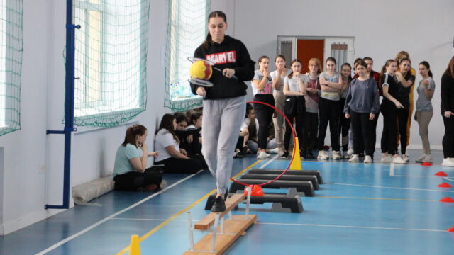 Спортивна програма дня розпочалася спільною зарядкою для всіх студентів і викладачів  разом на подвір’ї коледжу. До участі в змаганнях було допущено 16 команд, серед яких була команда викладачів. Учасники команд завзято виконували завдання на швидкість у комбінованій естафеті. Після обідньої перерви відбулися командні змагання, під час проведення яких концентрація уваги учасників відігравала не меншу роль, ніж швидкість виконання. Юнаки продовжили змагання  з міні-футболу, на першість між курсами, а дівчата змогли перевірити свою фізичну підготовку: спритність, гнучкість і витривалість у рухливих іграх.