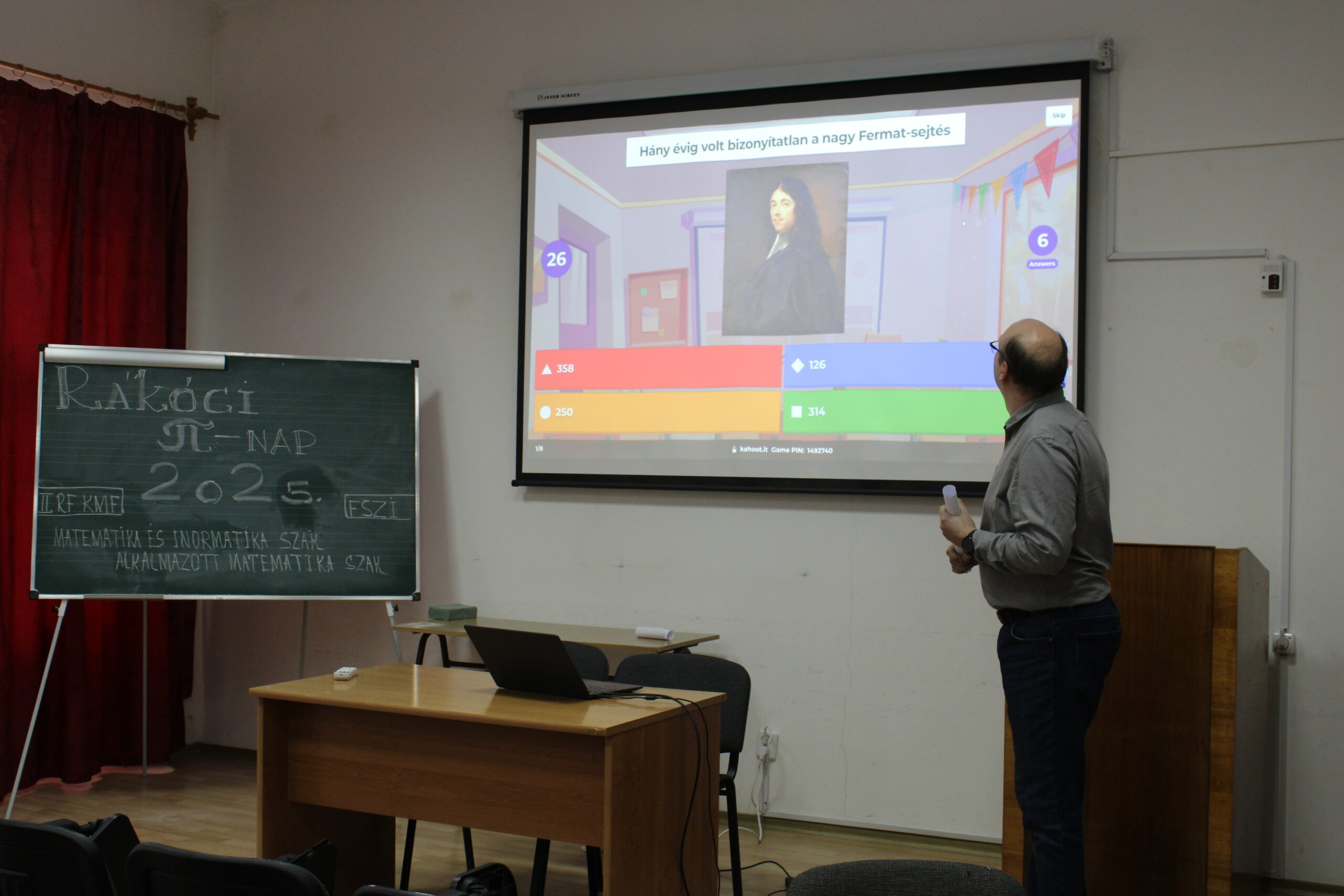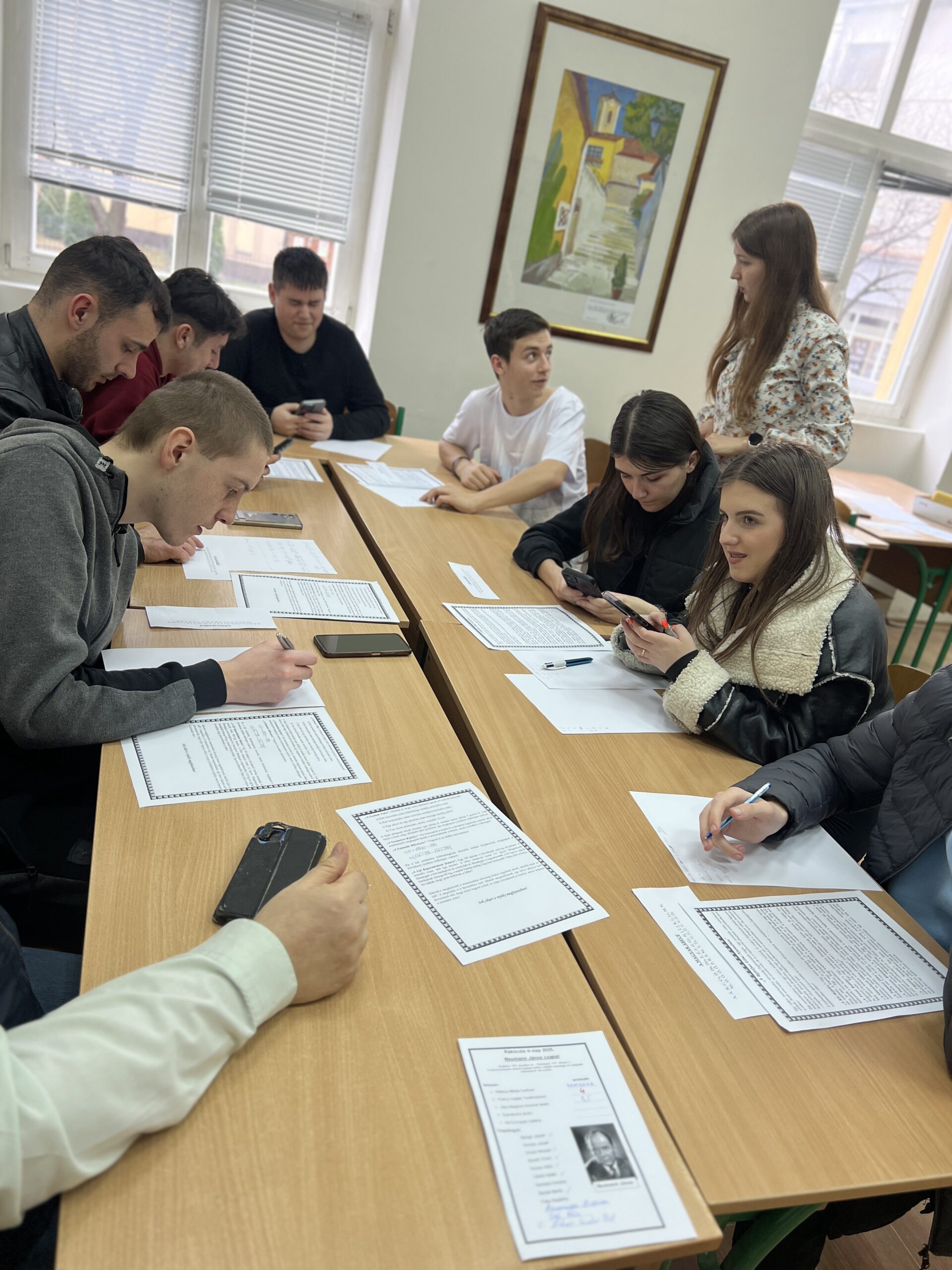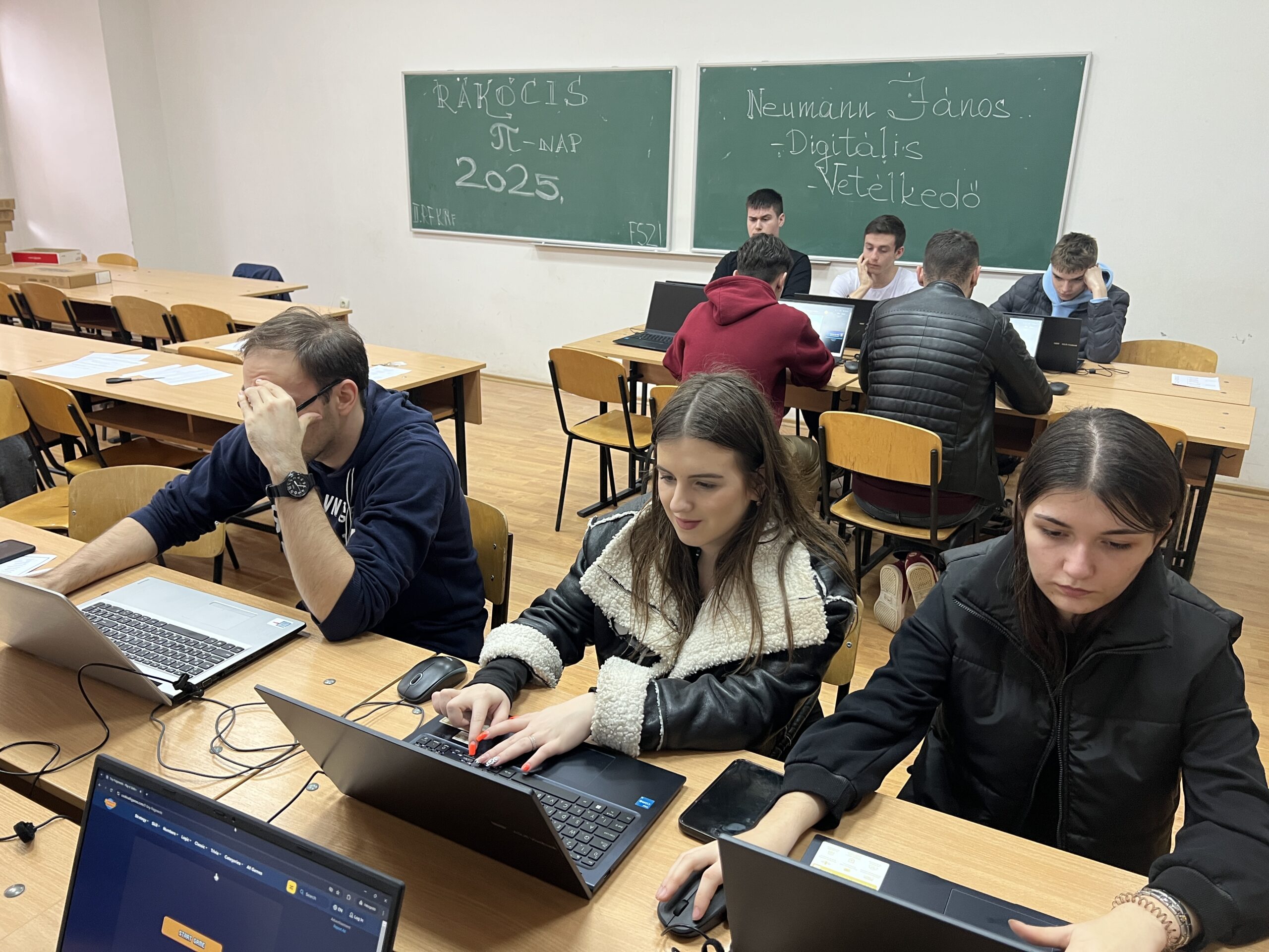 Однією з особливостей цьогорічної програми було творче завдання: ми заохочували всіх написати π–вірші. Відрадно, що до організаційного комітету надійшло кілька таких творів. Головною подією став командний забіг-квест територією Інституту Ракоці. Учасники мали змогу перевірити свої навички на різних станціях: логічні головоломки, математичні завдання, цифрові ігри – кожен міг знайти щось цікаве для себе. Змагання дало змогу учасникам ближче познайомитися з різними підрозділами інституту. На кожній локації на команди чекали унікальні випробування. Так, студенти виконували спеціальні завдання у Галереї Na’Conxypan, Ракоці Медіа-центрі, Текстильному музеї К. Полоні, а також у залі Яс-Надькун-Сольнок, де відбулася цифрова вікторина ім. Яноша Неймана, в аудиторії Сентендре учасників очікувало математичне змагання «Слідами загадкового розуму» з розшифрування кодів.